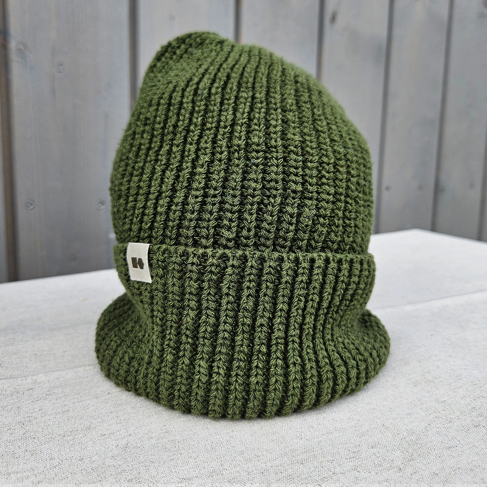 Czapka konopno-bawełniana z małym logo (zielona szmaragdowa)