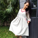 Sukienka bawełniano-konopna z czerwonymi lamówkami