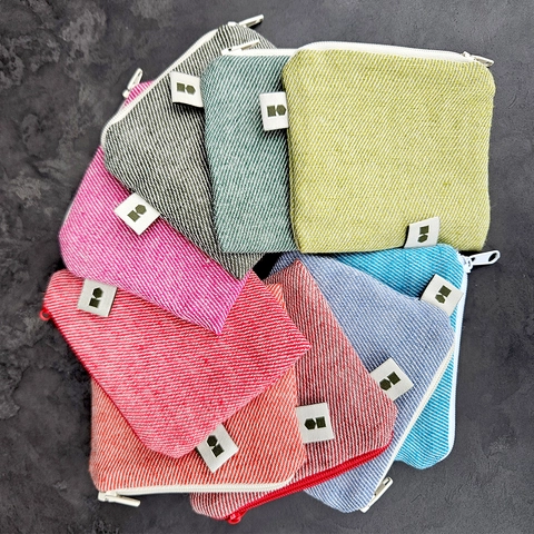 Portfelik uszyty z tkaniny o skośnym splocie, wykonanej z mieszanki 70% bawełny i 30% konopi. Kolorowy wątek tworzy ciekawy melanż, dzięki czemu każda sztuka ma swój unikalny wygląd.