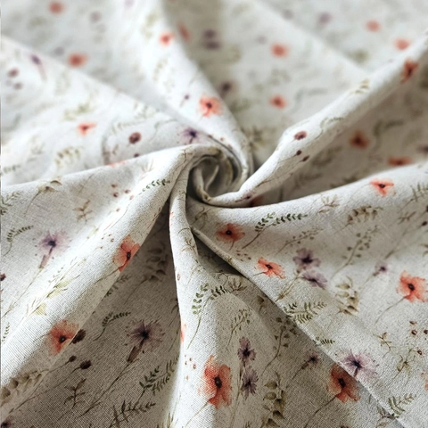 Tkanina bawełniano-konopna NADRUK “KWIATY” - splot PŁÓCIENNY (1 m)