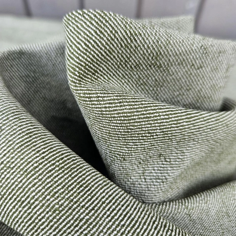 Tkanina bawełniano-konopna OLIWKOWA - splot SKOŚNY (3 m)